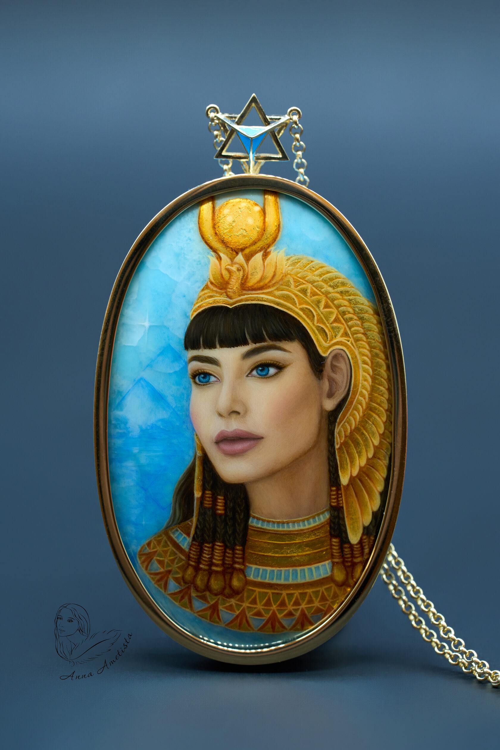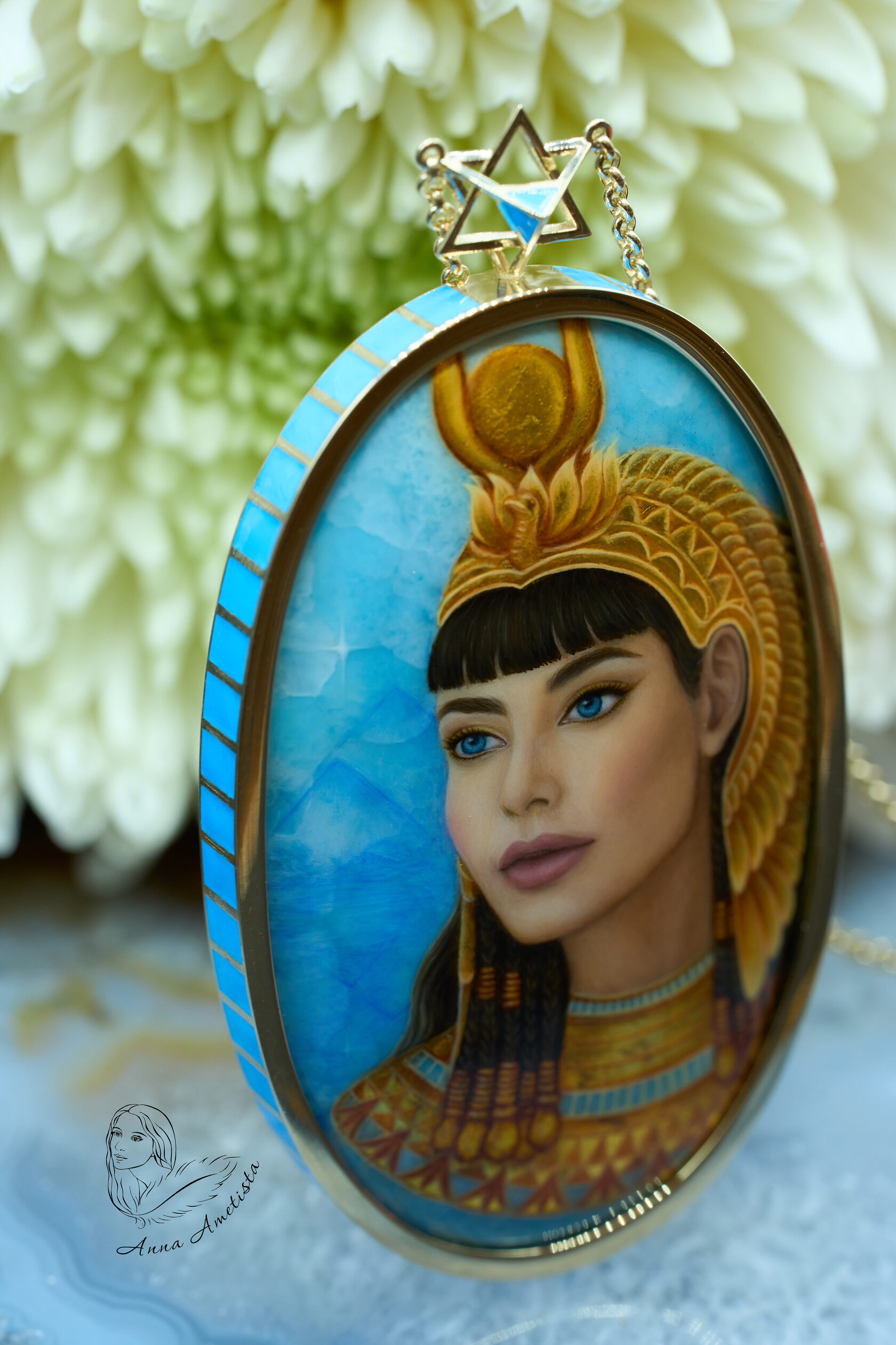 Кулон с росписью на камне может стать незабываемым подарком на день рождения для женщины, влюбленную в Древний Египет.
